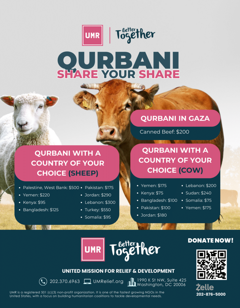 This year, UMR (United Mission for Relief & Development) is continuing this sacred tradition by delivering Qurbani meat to the most vulnerable communities across Gaza, Sudan, Yemen, Somalia, and more. Your sacrifice, through UMR, feeds displaced families, malnourished children, and people facing crisis and hunger.